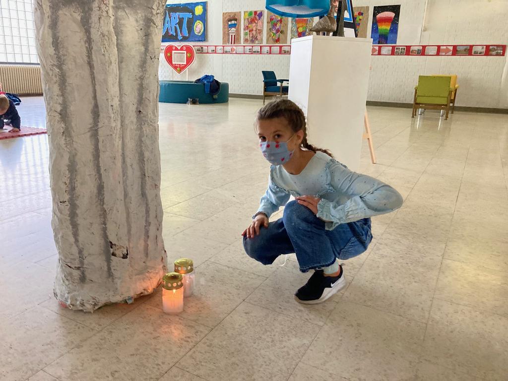 During the morning PYP and MYP students, together with their teachers, lit a candle around the water tower model in the school hall.