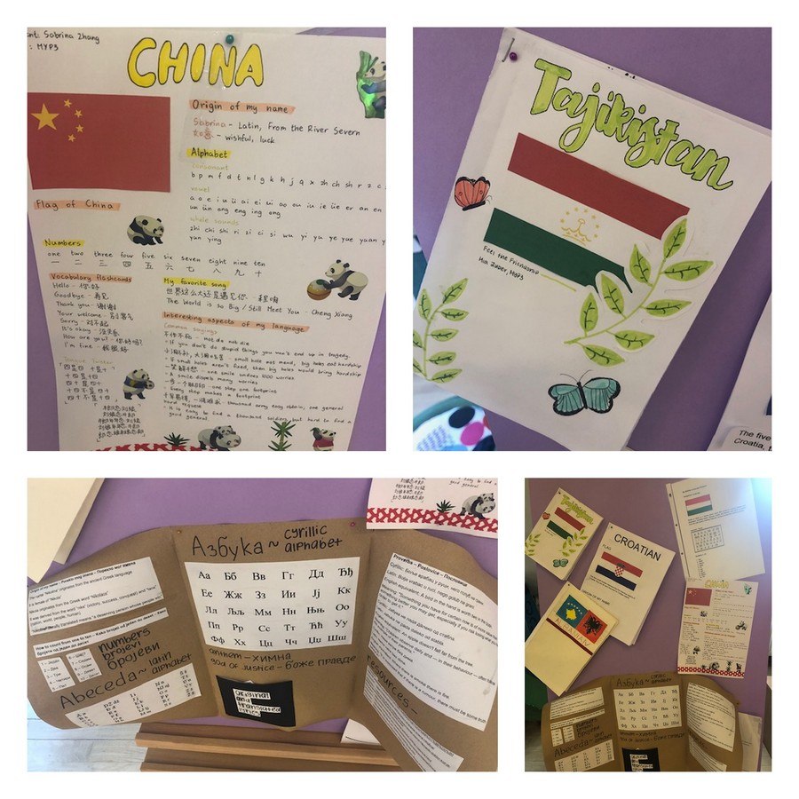 The students created their Language passports showcasing the meanings and origins of their names to explore cultural significance of naming traditions, some interesting facts about their language, common phrases that others might like to learn, proverbs that often communicate the values of a culture and favourite poems.