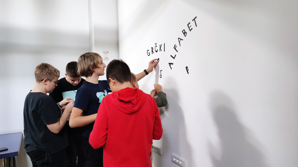 Kupili smo samoljepljivu foliju i odlučili ukrasiti našu učionicu alfabetom, a zapravo nam je bilo važno da smo okruženim novim pismom kako bismo ga što prije savladali.