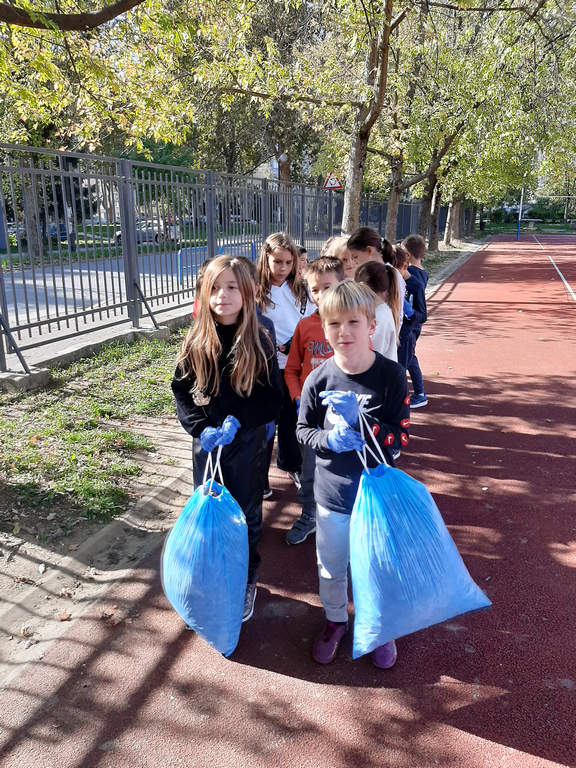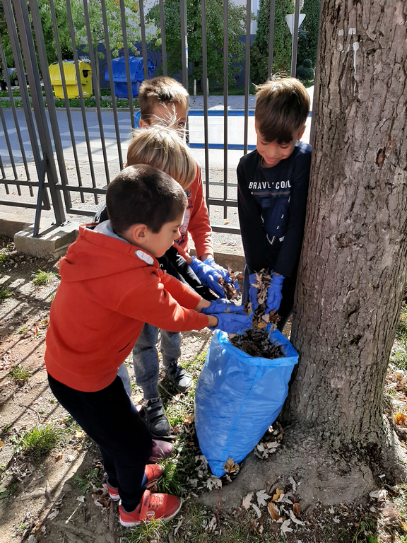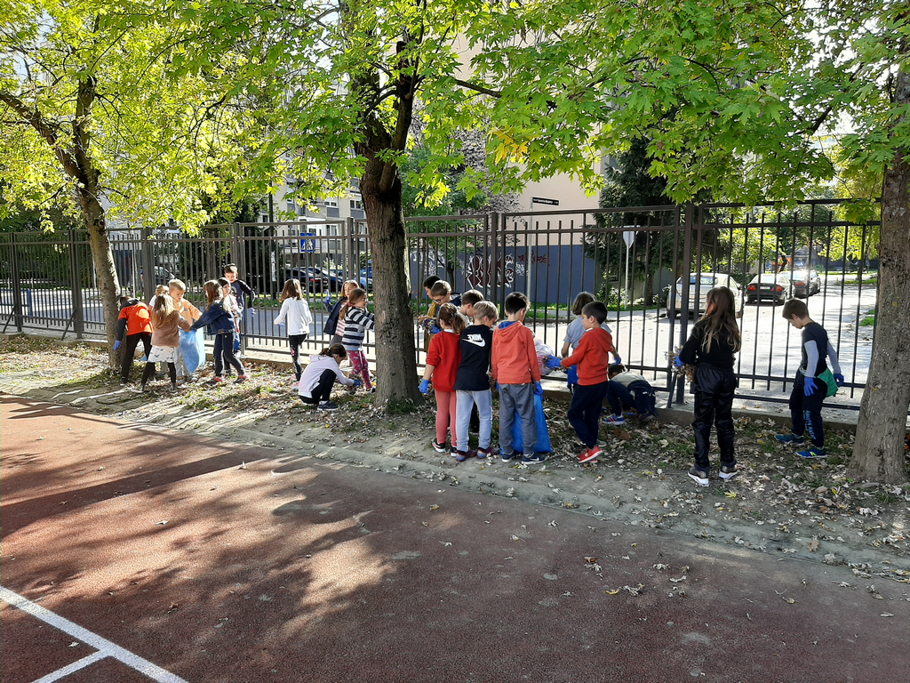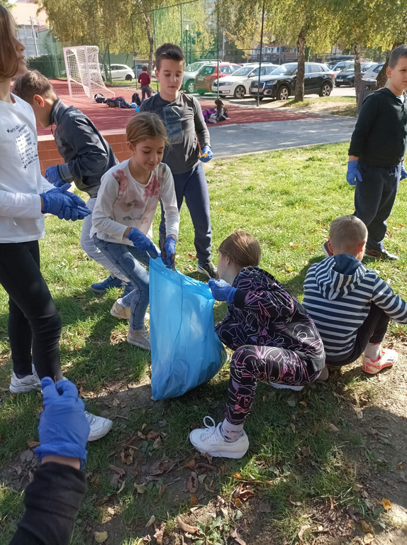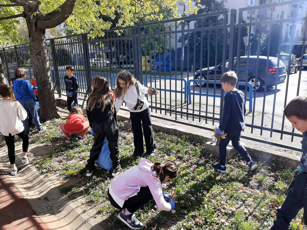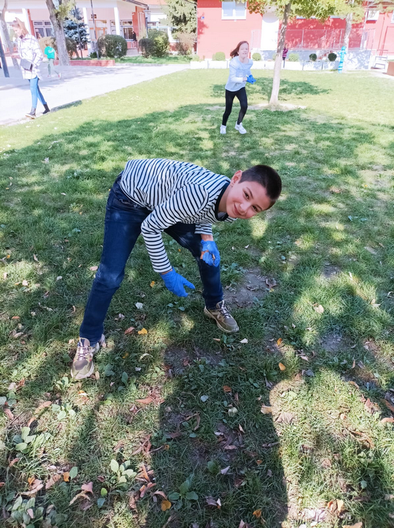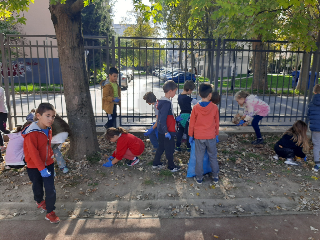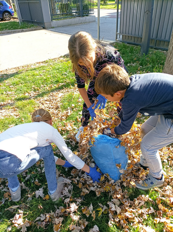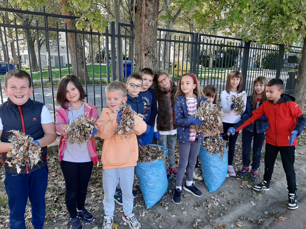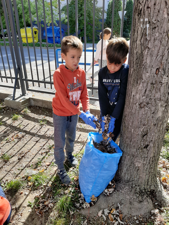 Zato su učenici produženog boravka odlučili zasukati rukave, staviti zaštitne rukavice i prihvatiti se posla. Zajedničkim snagama prikupljali smo suho lišće i odlagali ga na mjesto za kompost. Tako smo povezali međupredmetene teme Građanski odgoj i Održivi razvoj te ih proveli u djelo.