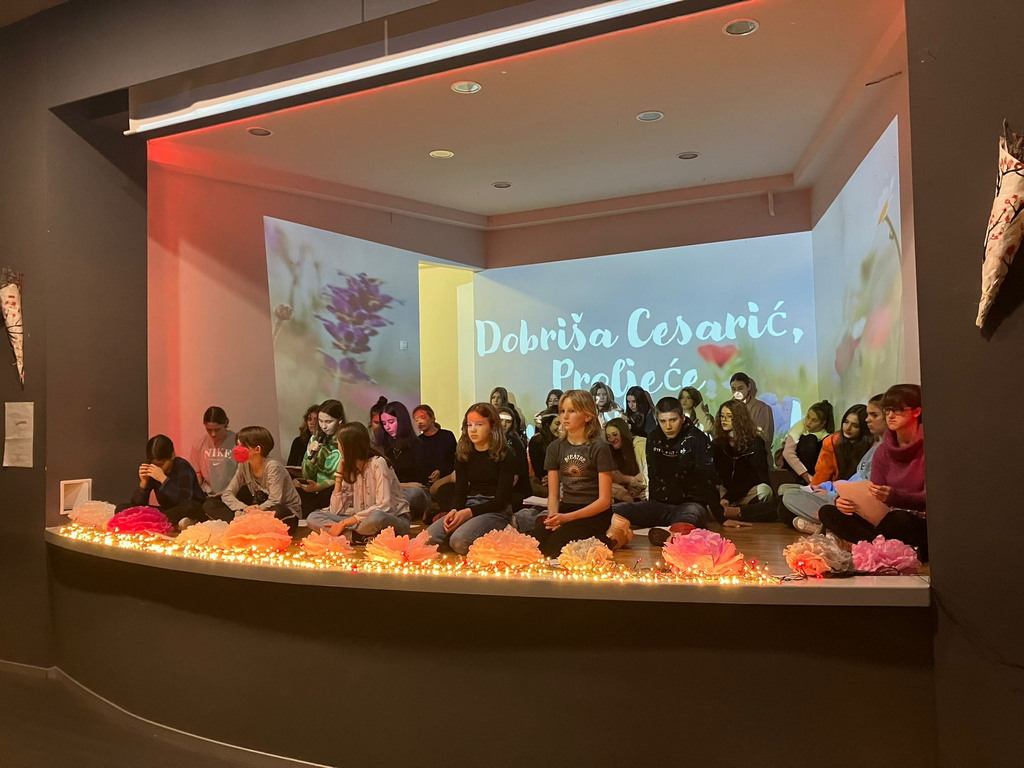 Cijela družina od tridesetak učenika viših razreda sudjelovala je u bogatom programu, podijeljenom u tri lirske cjeline: recitiralo se pejzažnu, ljubavnu i misaonu liriku naših antologijskih pjesnika: Vesne Parun, Tina Ujevića, Dragutina Tadijanovića, Dobriše Cesarića, Jože Skoka, Gustava Krkleca.