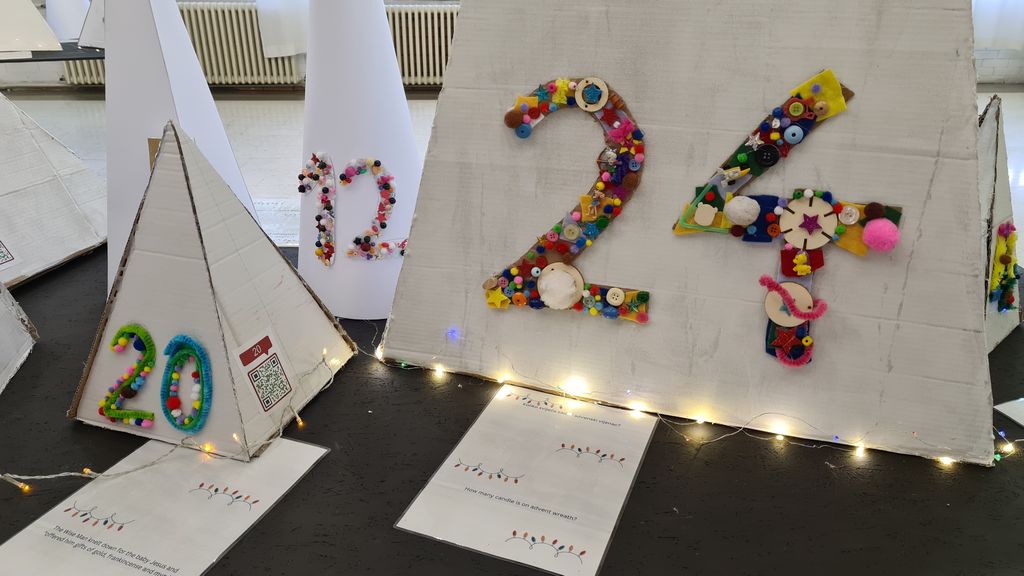 Svaka piramida/stožac predstavlja jelku i dan u adventskom kalendaru. Ispod svake jelke se nalazi zagonetka i zanimljivost (na hrvatskom i na engleskom jeziku) koja prati određeni datum. Sa strane jelke nalazi se QR kod preko kojeg se uz pomoć prethodno instalirane aplikacije na mobitelu (npr. QR Code Scanner) možete povezati s raznovrsnim digitalnim igricama na temu Djeda Božićnjaka/Santa Tracker. Preko ove poveznice možete istraživati s Djedovim vilenjacima, igrati se i kroz igru učiti.