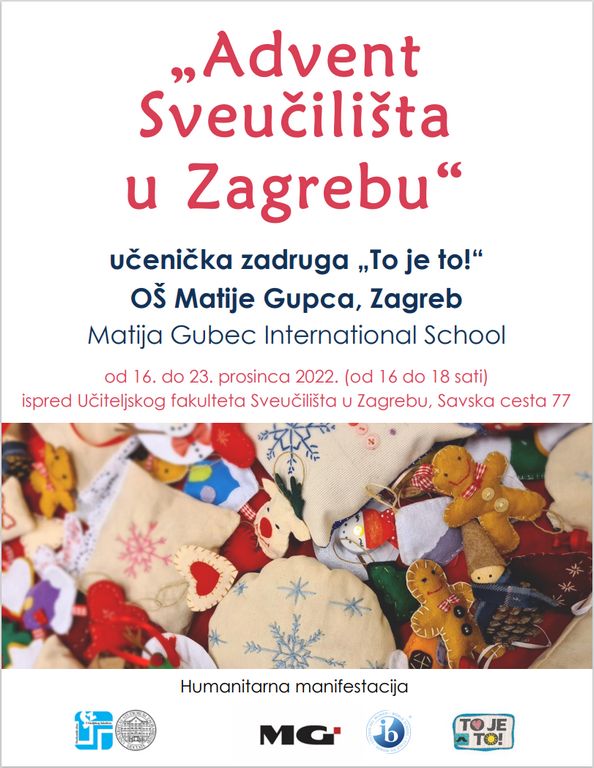 dođite na naš humanitarni adventski sajam ispred Učiteljskog fakulteta Sveučilišta u Zagrebu i kupnjom naših prigodnih proizvoda donirajte za pomoć djeci u Klaićevoj bolnici.