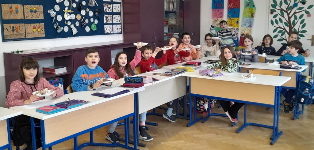 Proslavu rođendana naše škole na kraju smo obilježili tortom koju smo s oduševljenjem pojeli.