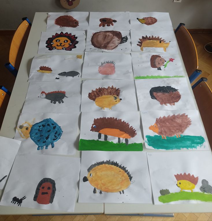 Uživajući u izradi svih likovnih radova, slušali smo pjesme Gle, ide jež te Žuta pjesma.