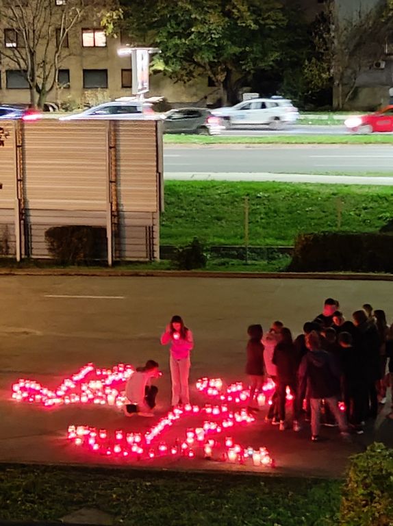 Simboličnom gestom paljenja svijeća u dvorištu škole (u obliku grlica) učenici su odali počast svim žrtvama Domovinskog rata.