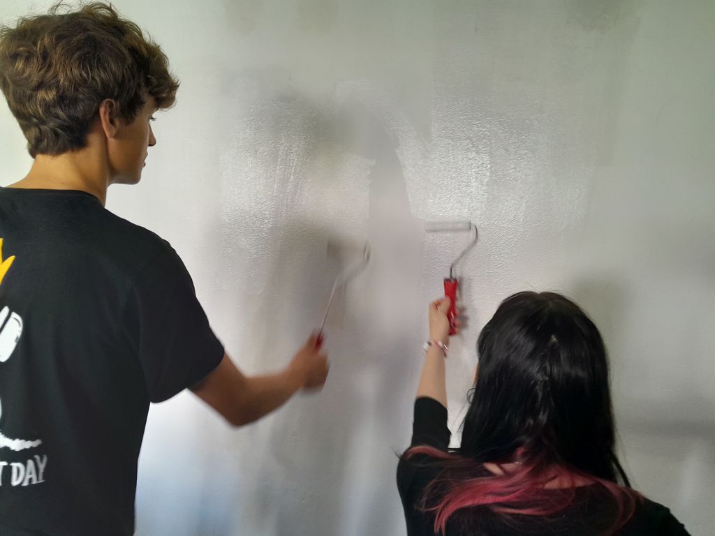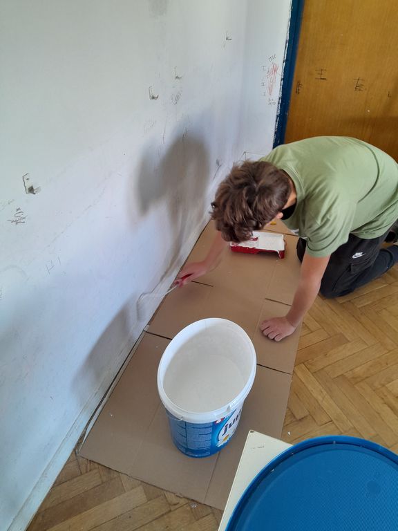 Učenici su počeli s „krpanjem“ i bojanjem zidova. Boju za zidove i materijal za izravnavanje dobili su od domara Željka, a špahtle, valjke i kistove za bojanje te brusni papir pronašli su u kabinetu tehničke kulture.