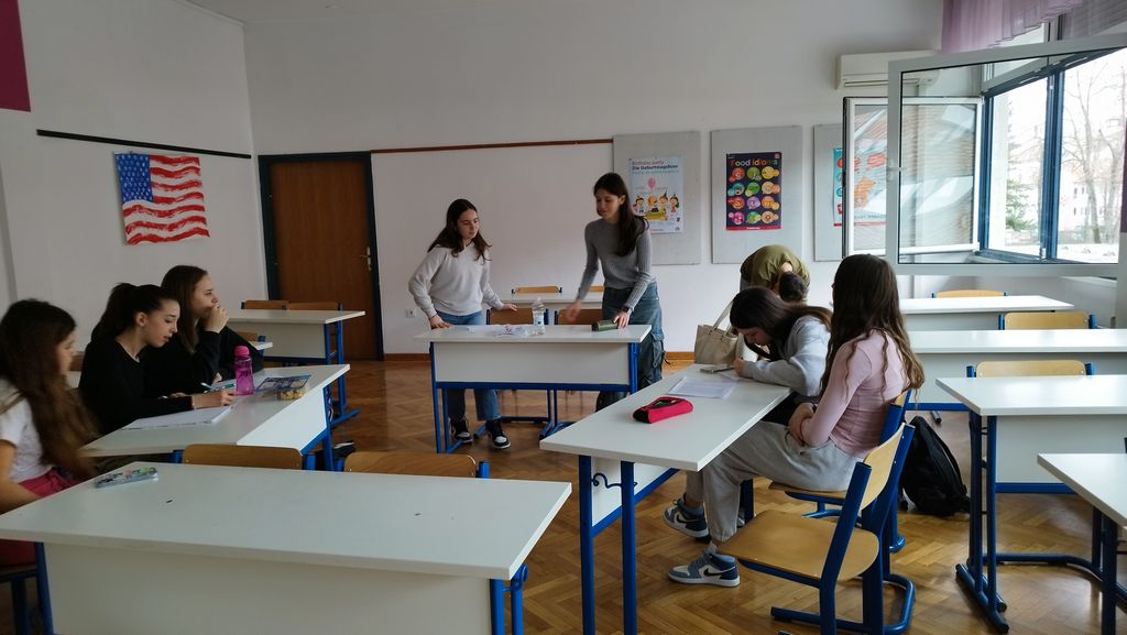 Naša bivša učenica i članica debatnog kluba koje je sudjelovala i na državnom natjecanju iz debate sa svojom ekipom prije dvije godine, dolazi nam i pomaže u pripremi za natjecanje.