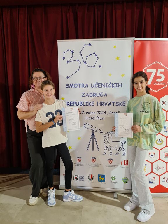 Na 36. smotri učeničkih zadruga Republike Hrvatske, održane 26. i 27. rujna 2024. u Poreču, rad naše učeničke zadruge "To je to!" predstavljale su učenice Viktoria M. iz 6./MYP1 razreda i Klara O. iz 6.a razreda, pod vodstvom učiteljice mentorice Ivane Devernay Cimić.