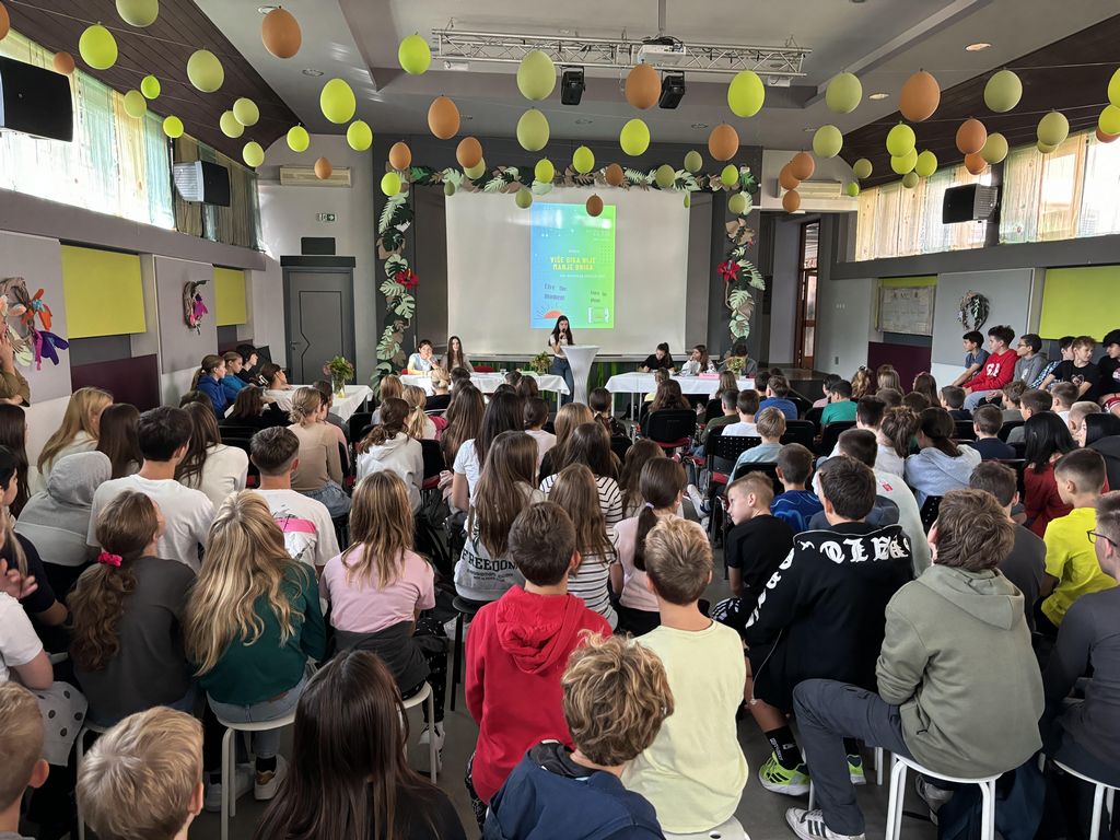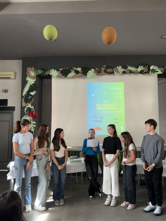 Dan mentalnog zdravlja, ove školske godine, obilježen je brojnim aktivnostima, a između njih i debatom na tezu Više giga nije manje briga. Učenici školskog debatnog tima Paula D., Barbara B., Tara H. u afirmacijskoj ekipi, Jelena Kim B., Hana H. i Ivan S. u negacijskoj ekipi debatirali su o prednostima i nedostacima uporabe pametnih uređaja, prvenstveno u školi, ali i općenito u životu djece i mladih. Afirmacijska skupina u svojem govoru postavila je niz čvrstih argumenata vezanih uz negativan učinak korištenja mobitelja u školi i školskom okruženju na face to face odnose, ali i akademski život, odnosno ometenost pažnje i koncentracije s nastavnih sadržaja, kao i utjecaj na dinamiku tijekom nastavnog procesa i vođenje razrednog odjela od strane učitelja.