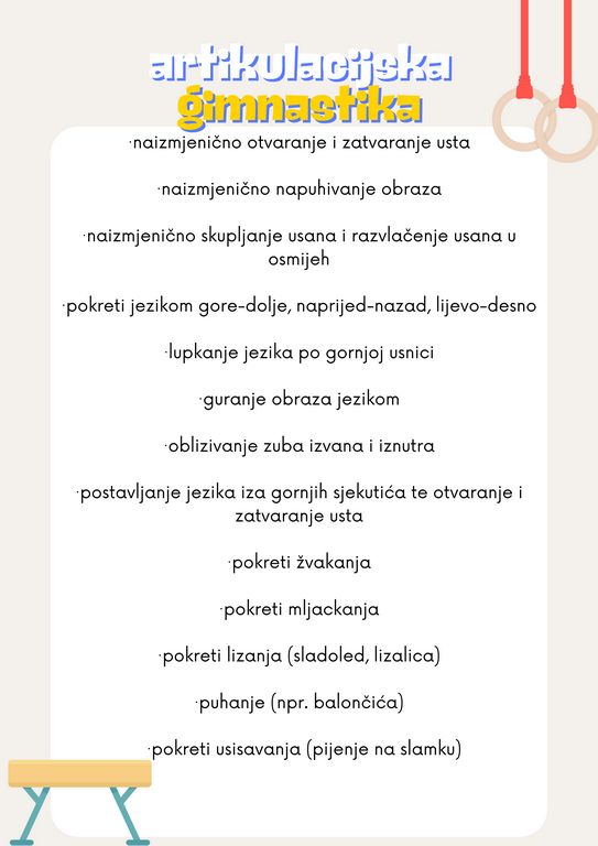 Prije samog uvježbavanja izgovora, nužno je da dijete pojedini glas uočava i razlikuje od ostalih, da provodi artikulacijsku gimnastiku te da poznaje i može uspostaviti pravilan položaj izgovornih organa.