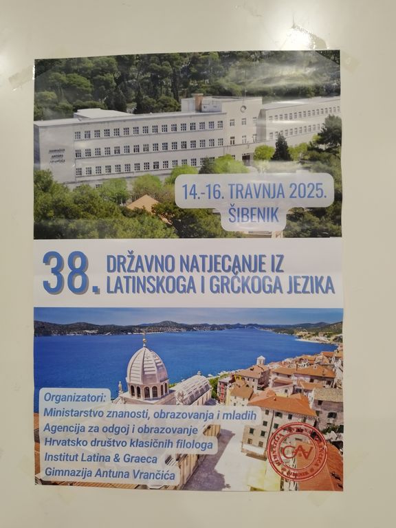 Državno natjecanje iz klasičnih jezika se ove godine odvijalo u Šibeniku i Vodicama od 14. - 16. travnja 2025.