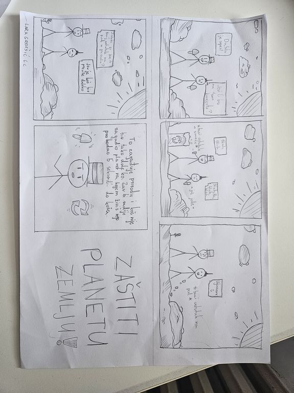 Ususret Danu planeta Zemlje koji se svake godine održava 22. travnja, učenici su na satu geografije izrađivali crteže i stripove vezane za temu održivosti, zaštite okoliša i razvrstavanja otpada.