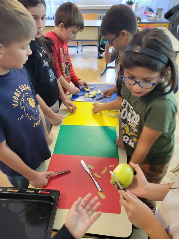 Učenici 2.a razreda učili su kako pripremiti ukusne kekse, crumble od jabuka i osvježavajuću limunadu. Kroz te aktivnosti savladali su osnovne korake kuhanja – od mjerenja sastojaka do pečenja i posluživanja.