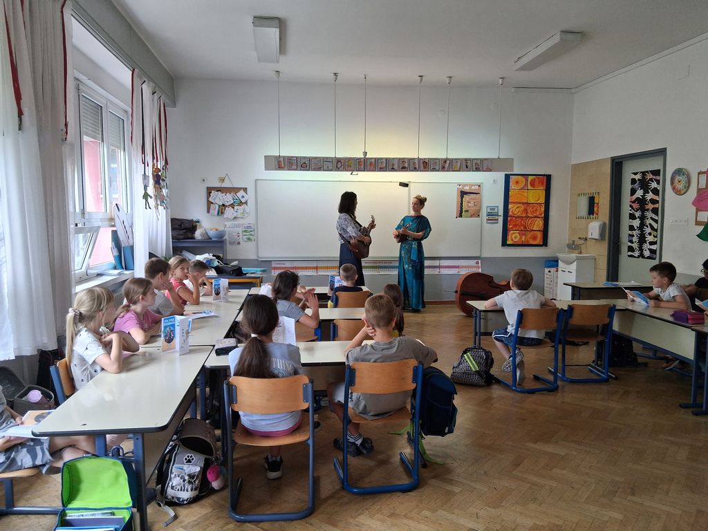 Majka jednog učenika, u suradnji s učiteljicom glazbene kulture Jelenom Galić priredila je mali koncert u učionici.