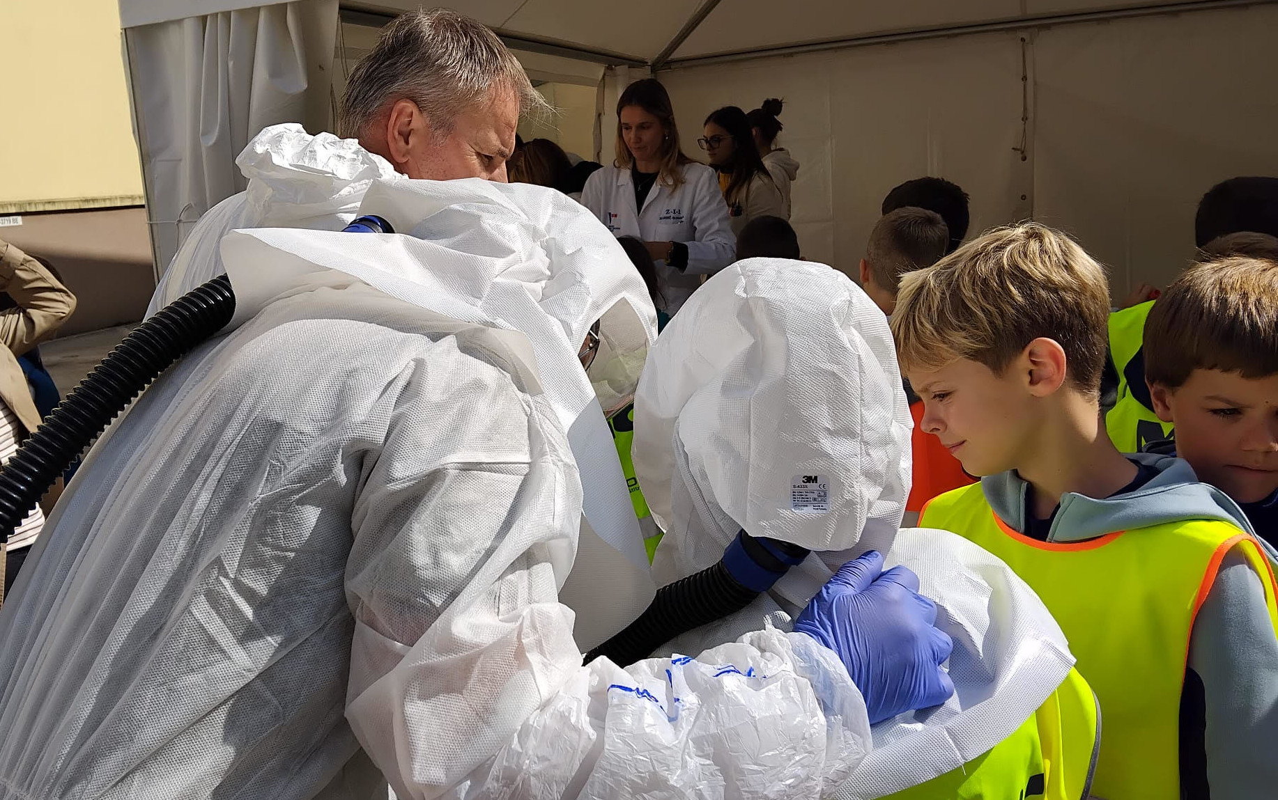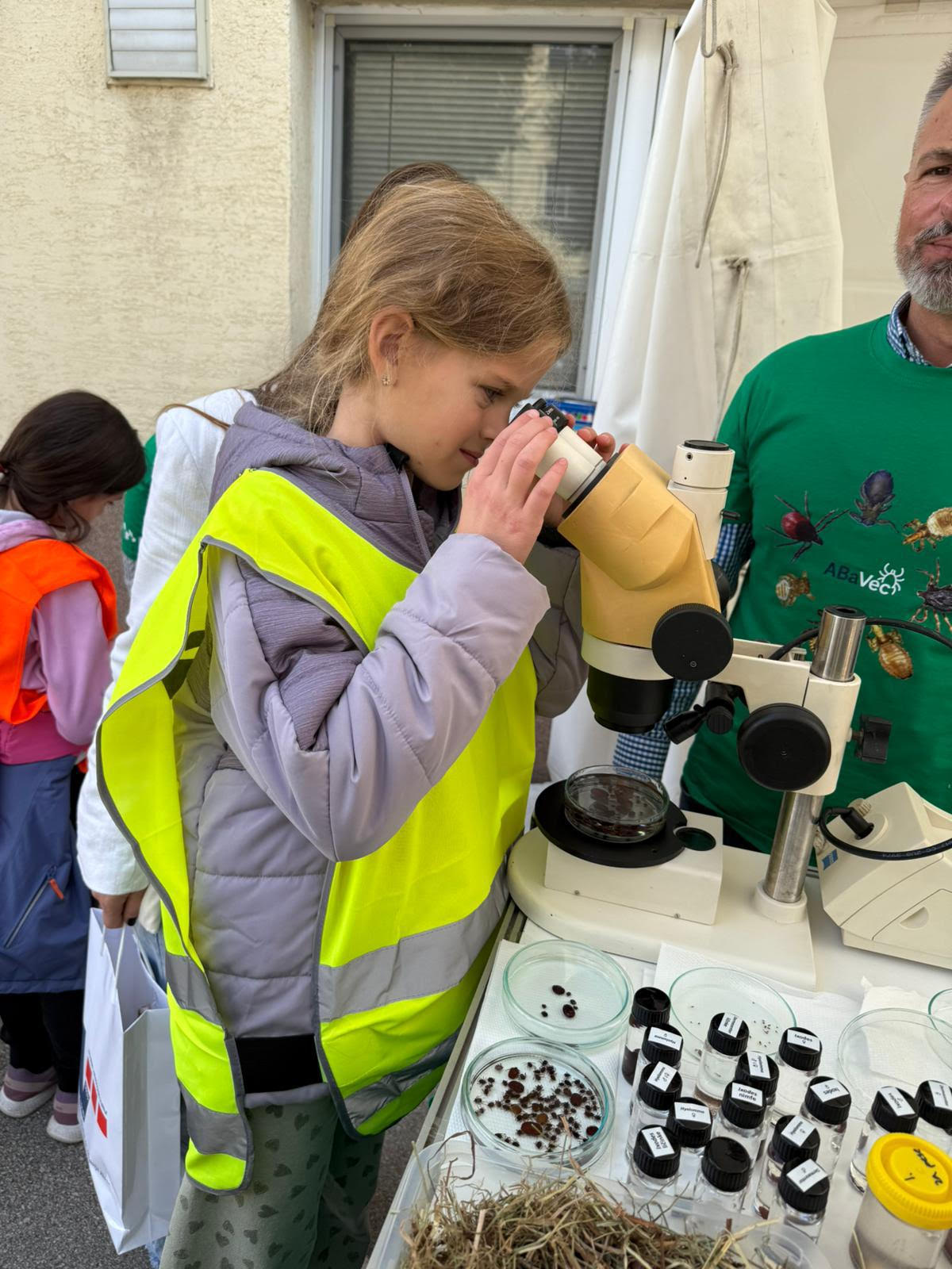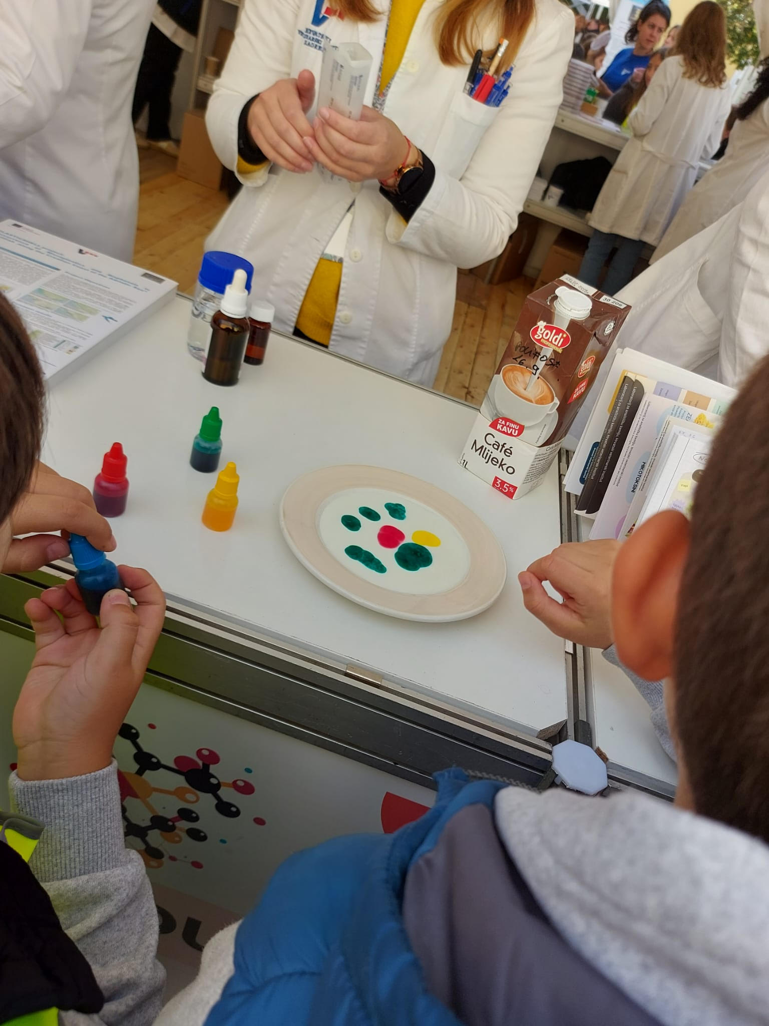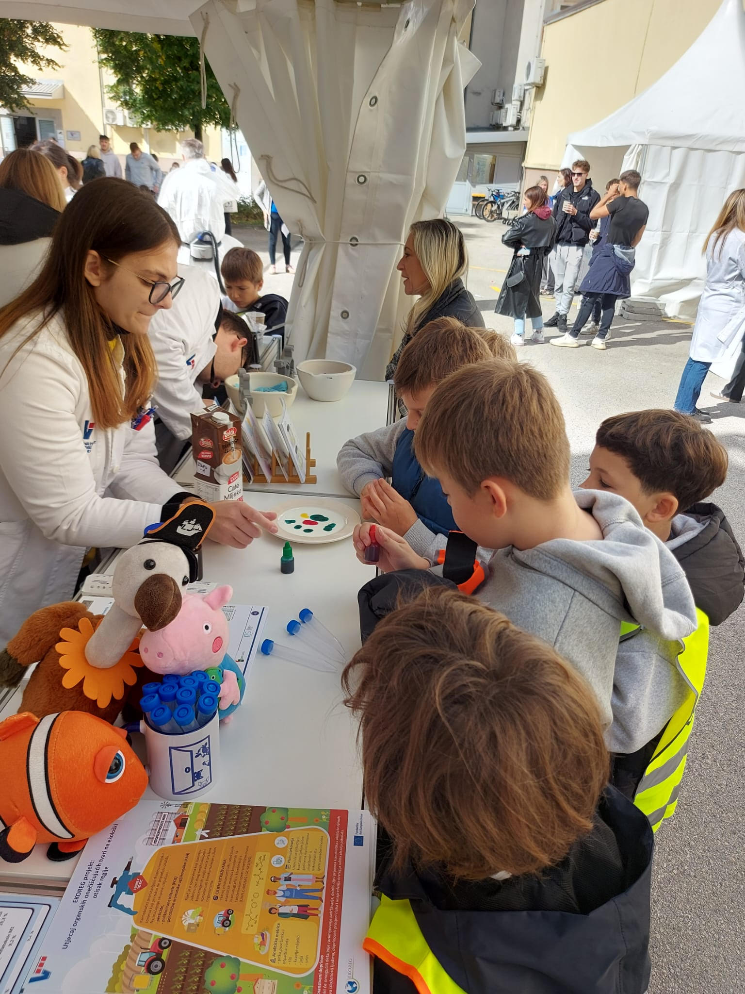 Gledali smo stvari na štandovima i mogli smo ih uzeti kao suvenire. Dobi smo epruvete, kante, zvona, crteže, lampe, plastelin i slično. Veterinarski institut bio mi je najbolji izlet dosad! (M. P.)