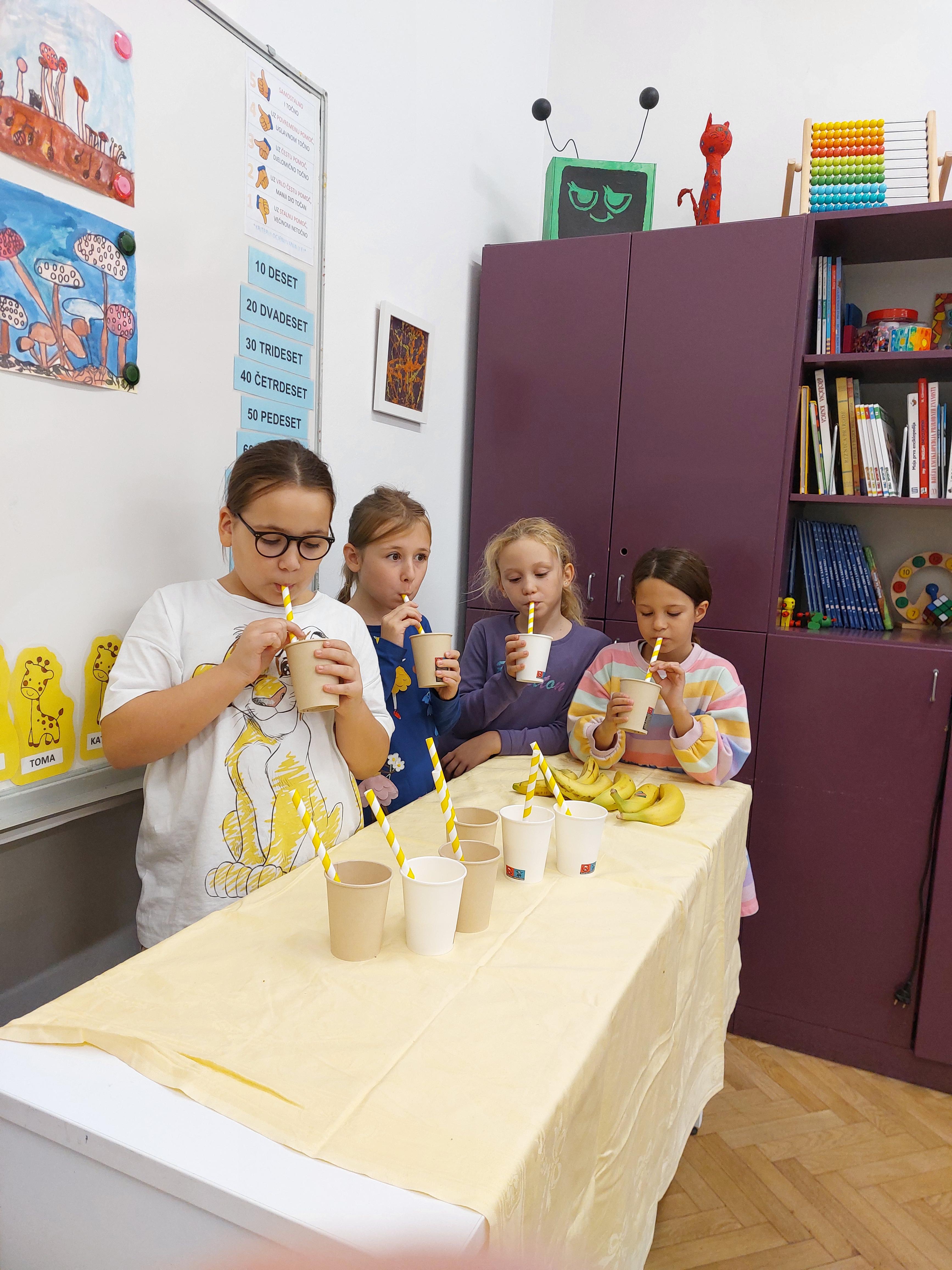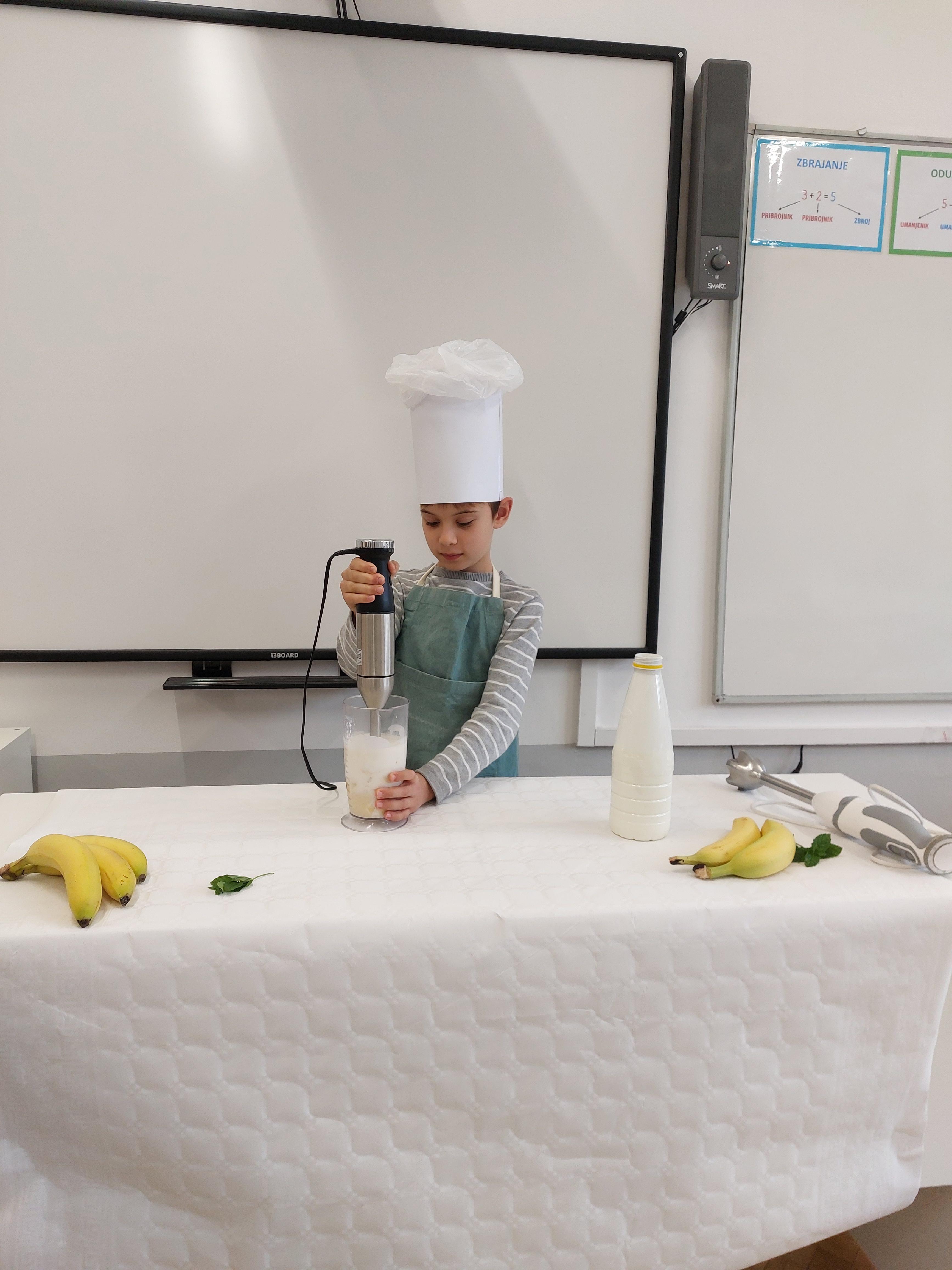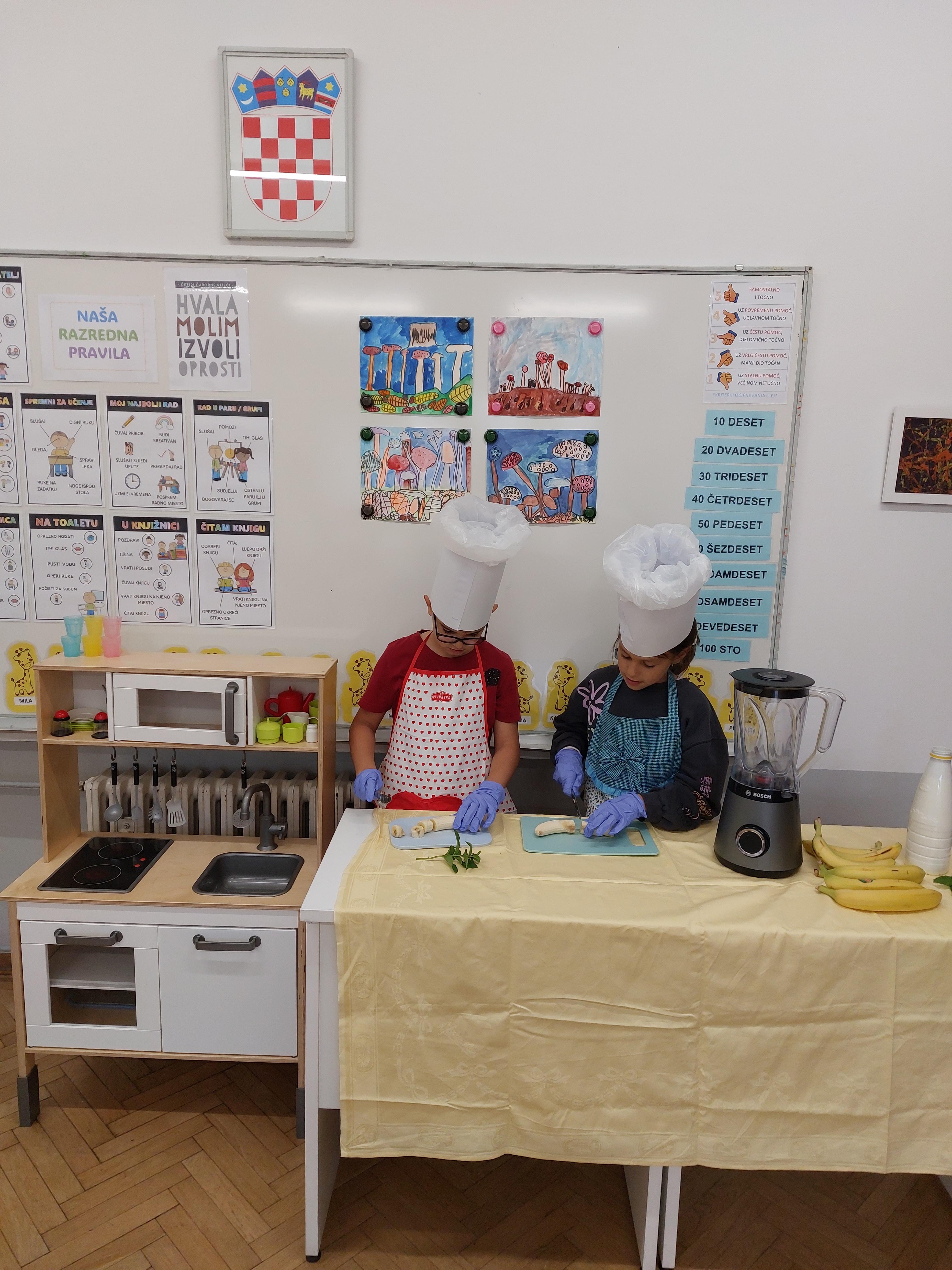 Jedna od raznovrsnih edukativnih i zabavnih aktivnosti organiziranih u produženom boravku 2.b razreda povodom Tjedna školskog doručka (13.-17. listopada) bila je i Izrada voćnog jogurta, kao jedne od zdravih i slasnih namirnica koje je dobro kombinirati s ostalim korisnim namirnicama pri osmišljavanju zdravog doručka.