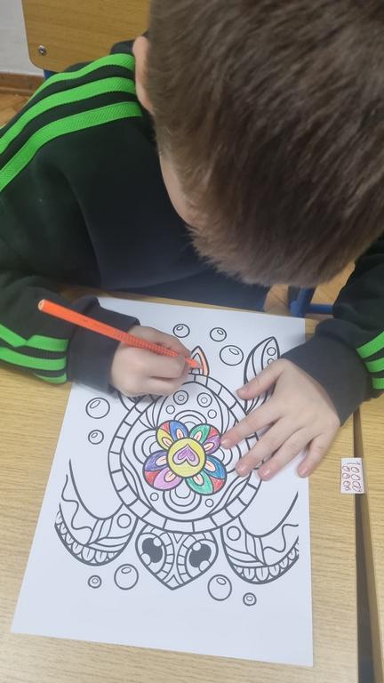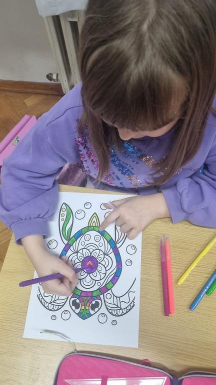 U sklopu aktivnosti, učenici su sudjelovali i u mindfulness radionici, gdje su bojali mandale s motivima morskih kornjača. Ova kreativna aktivnost potaknula je opuštanje, koncentraciju i izražavanje kroz boje, a istovremeno produbila njihovu povezanost s temom.