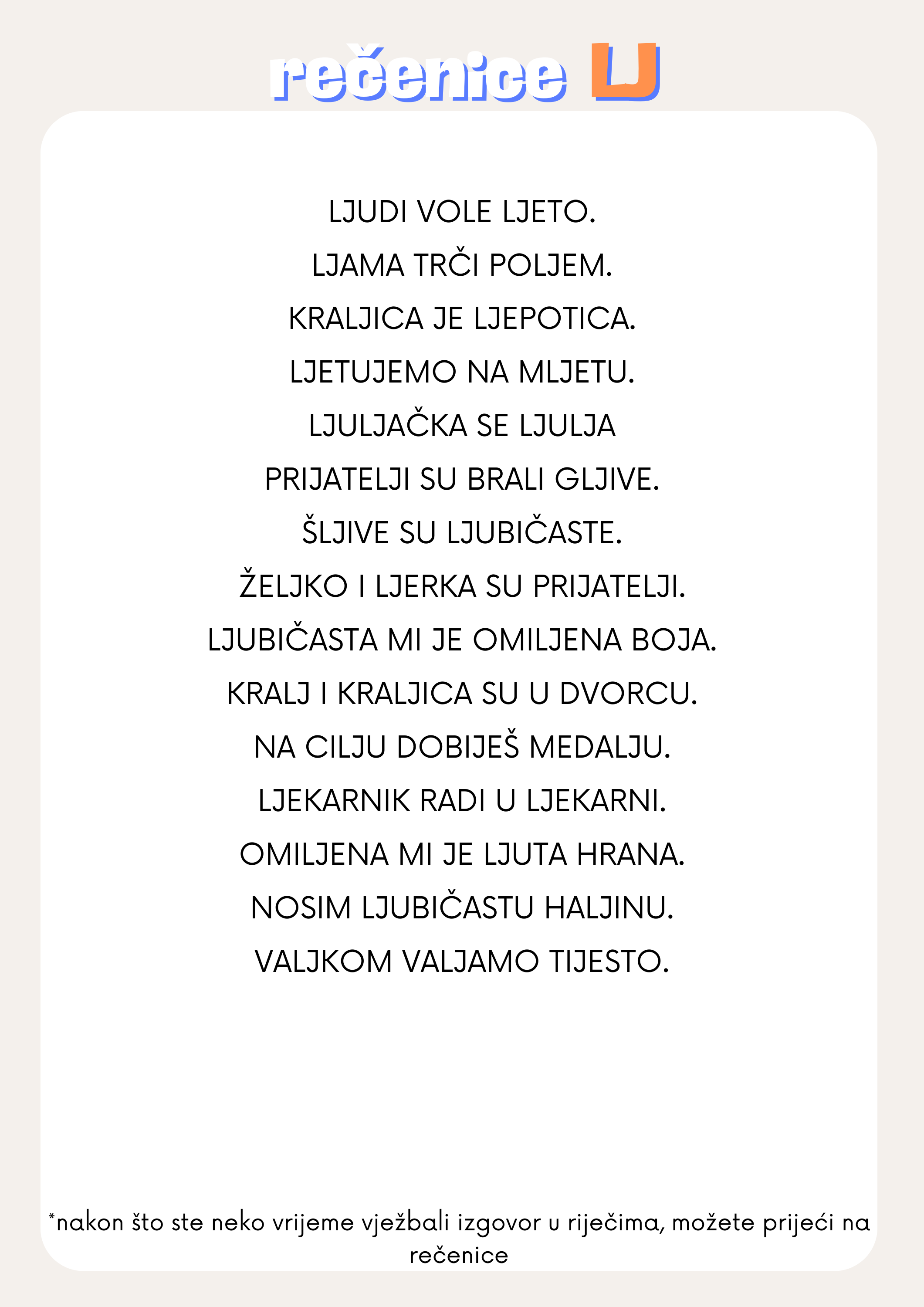 Posljednji glas u seriji Glas mjeseca je LJ. Preduvjet za korekciju izgovora glasa LJ je pravilno izgovaranje glasa L.