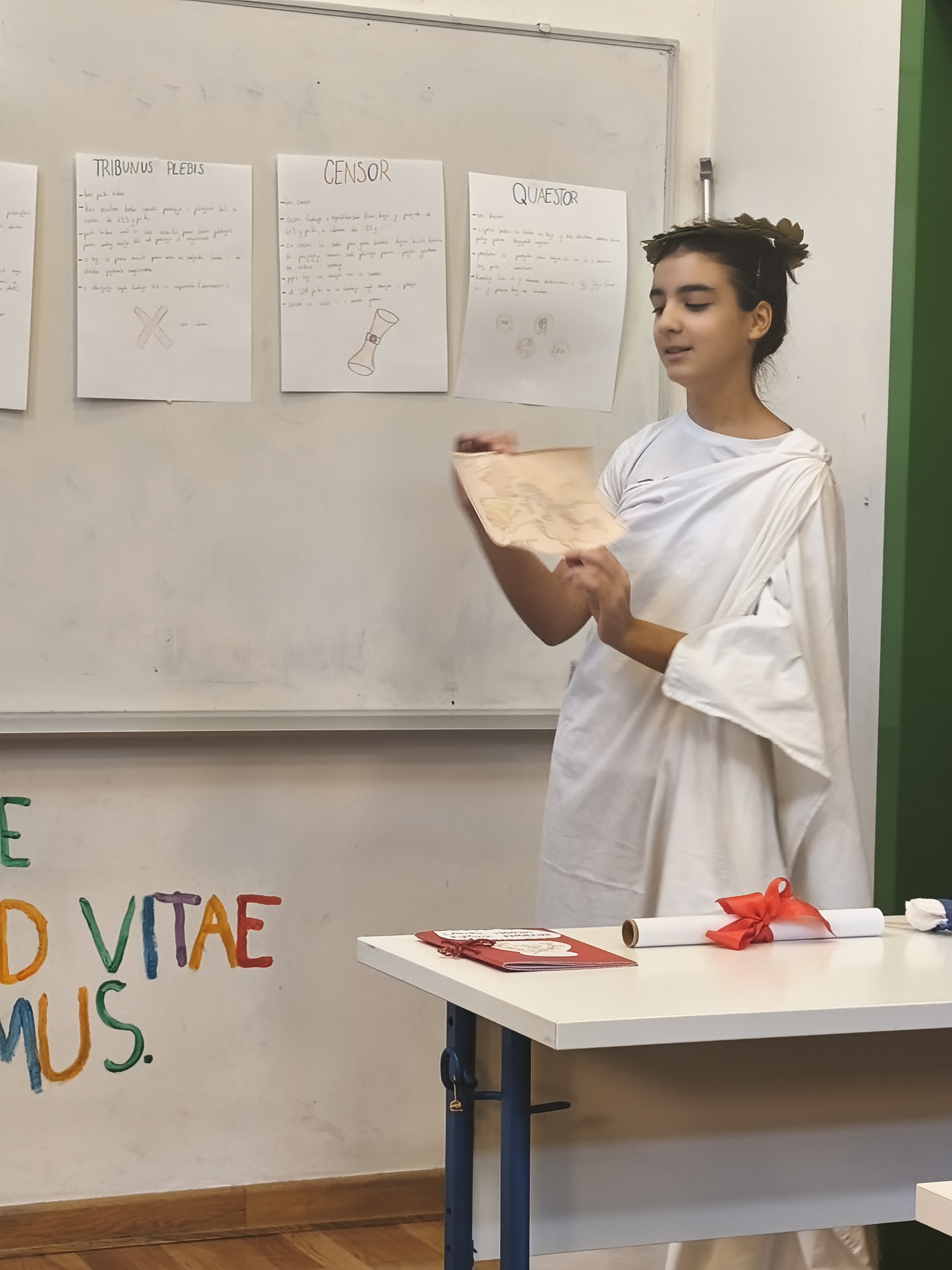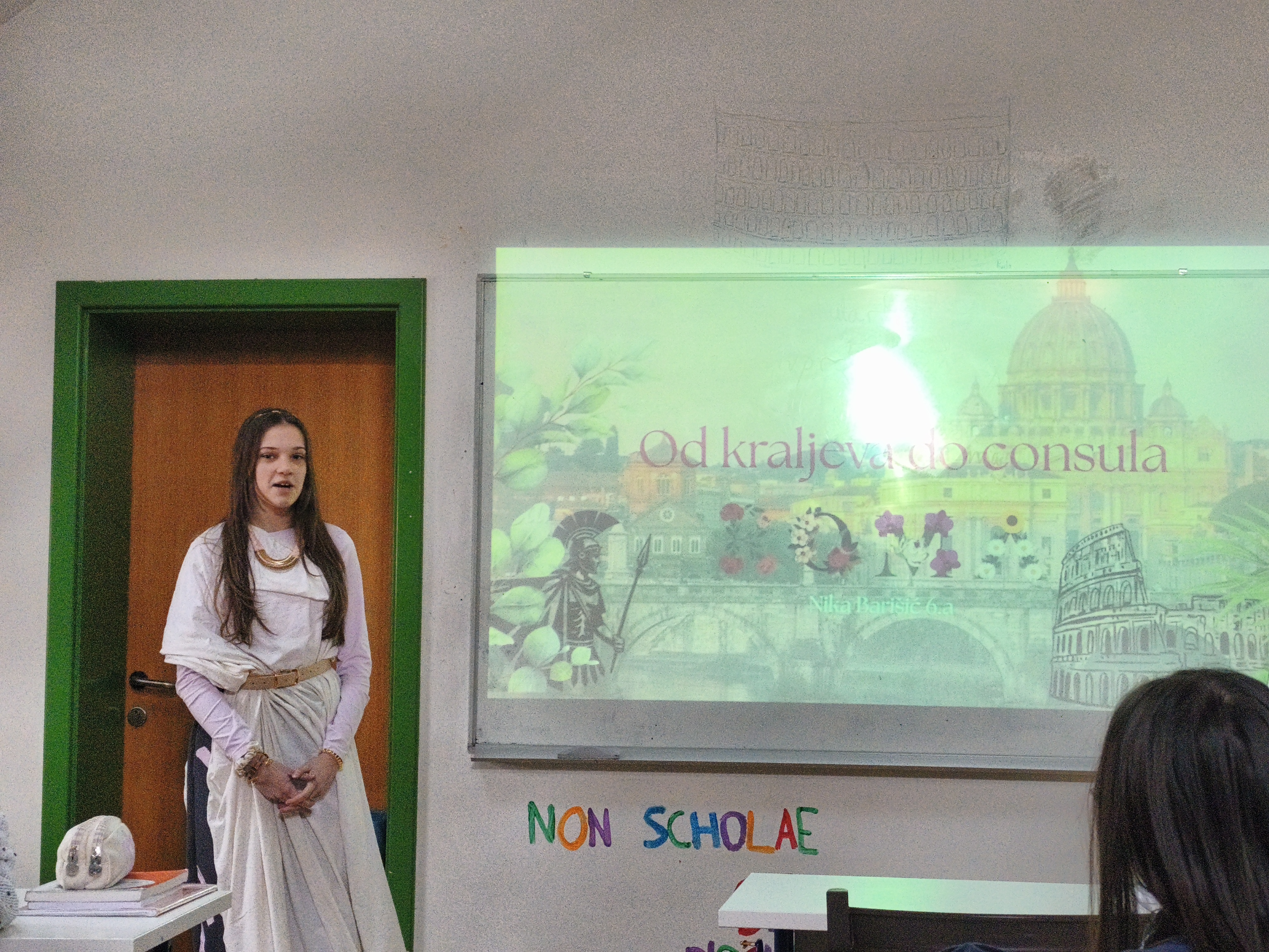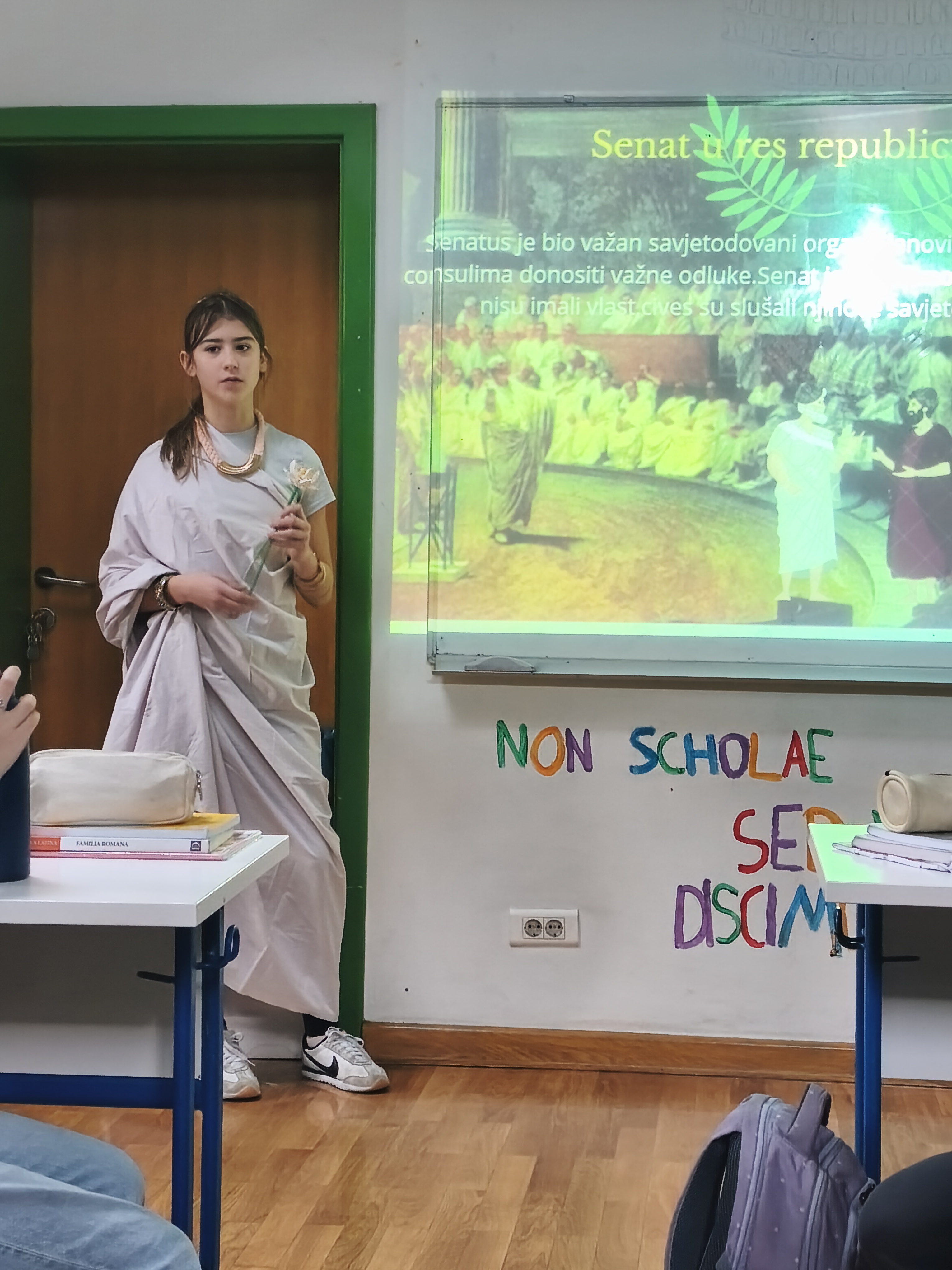 U sklopu nastave latinskog jezika, učenici 6. razreda sudjelovali su u kreativnoj i istraživačkoj aktivnosti posvećenoj razvoju Rimske Republike. Cilj zadatka bio je bolje razumjeti povijesne događaje, politički sustav i svakodnevni život Rimljana kroz aktivno sudjelovanje i različite oblike izražavanja.