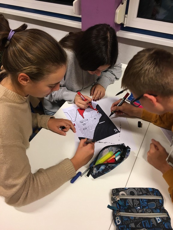 U sklopu nastave engleskog jezika učenici 8. razreda imali su radionicu blackout poezije. Tema je bila Halloween. Uz predloške iz romana Pride and Prejudice učenici su stvarali nove pjesničke slike i pokazali su svoju kreativnost.